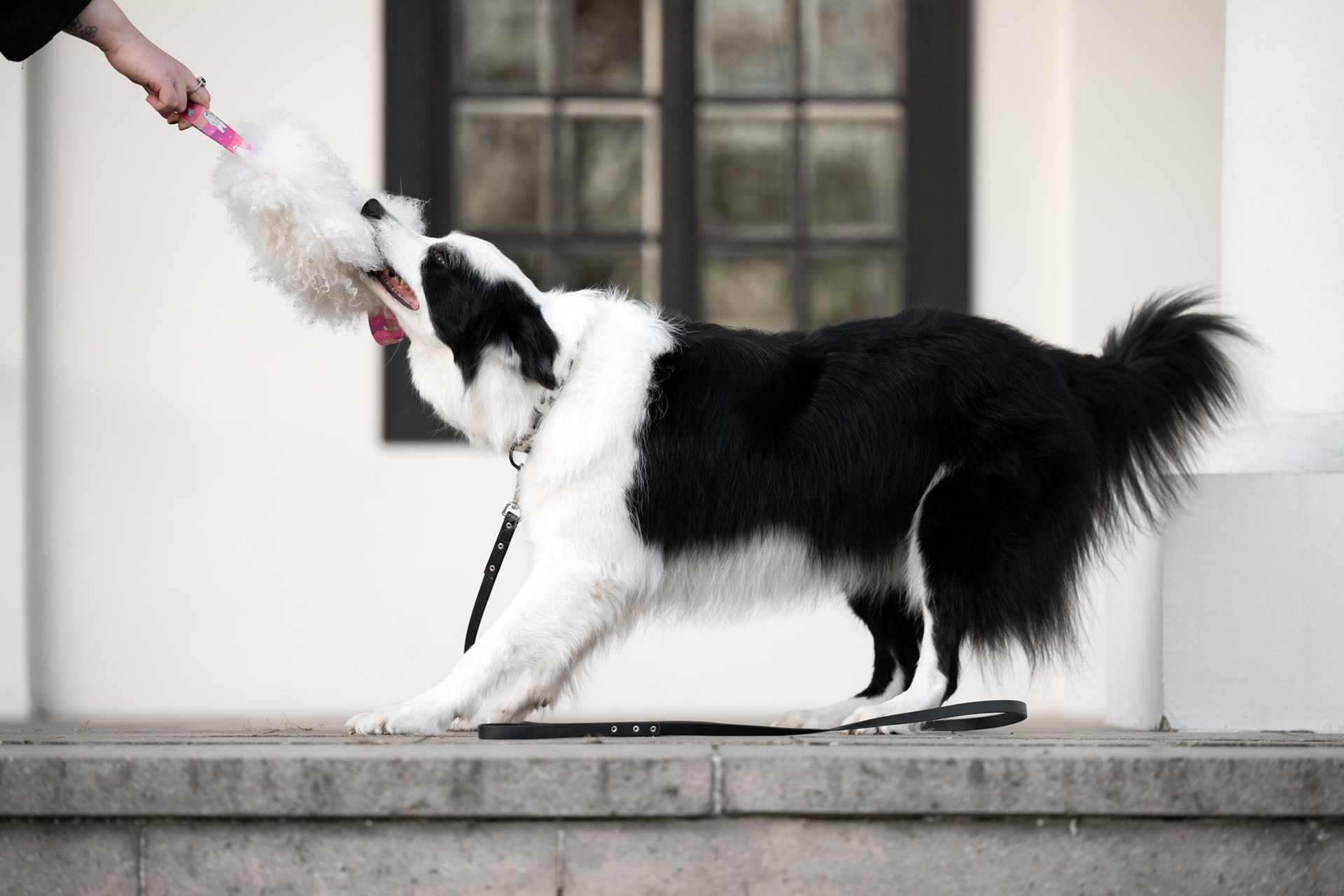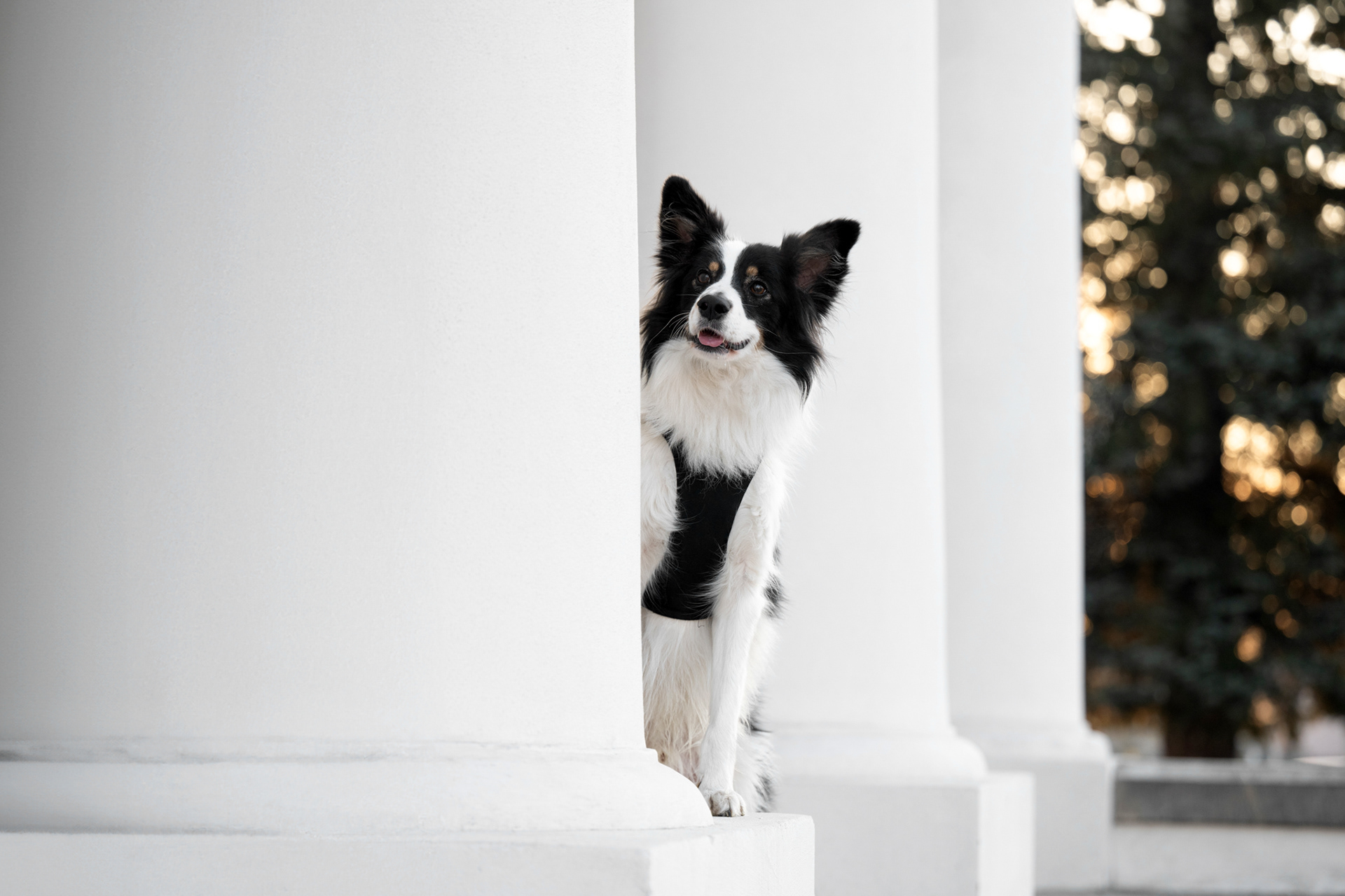 Białe ściany dworku, zabytkowa architektura i naturalna zieleń wokół pozwalają stworzyć kadry o klasycznym, ponadczasowym charakterze. Park otaczający obiekt jest zróżnicowany: znajdziesz tu alejki w cieniu drzew, trawiaste polany, niewielkie mostki i spokojne zakątki, w których pies może poczuć się swobodnie.