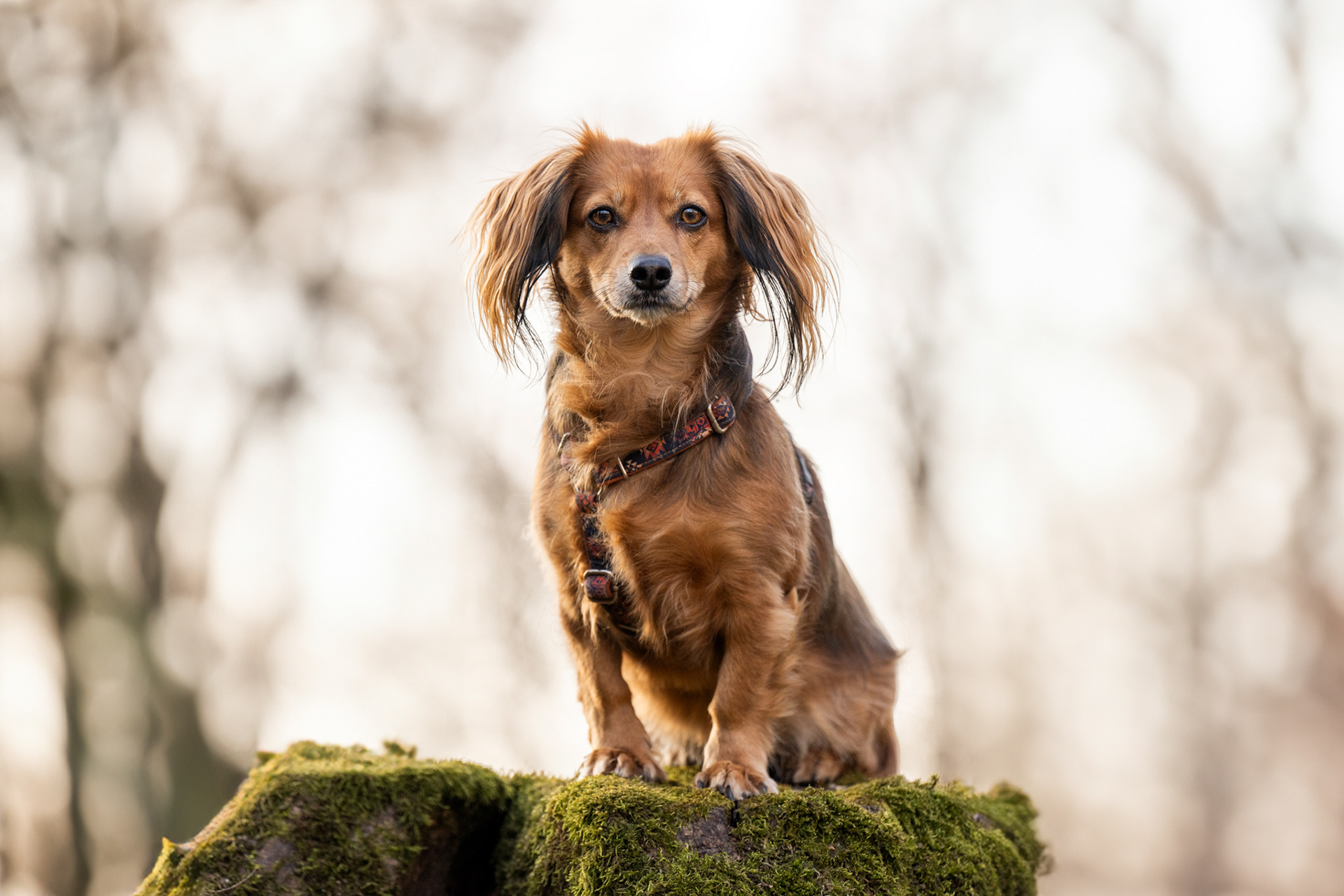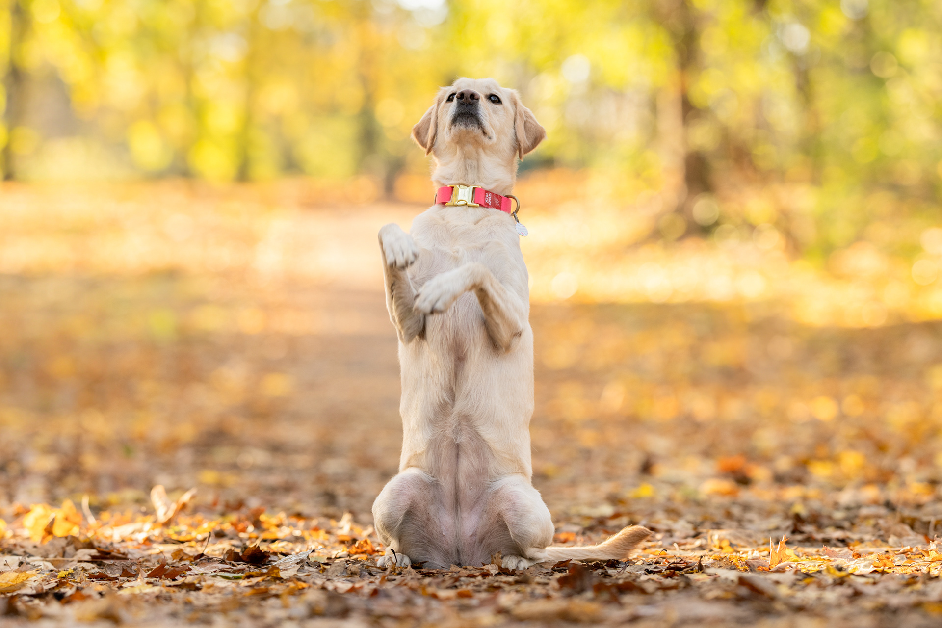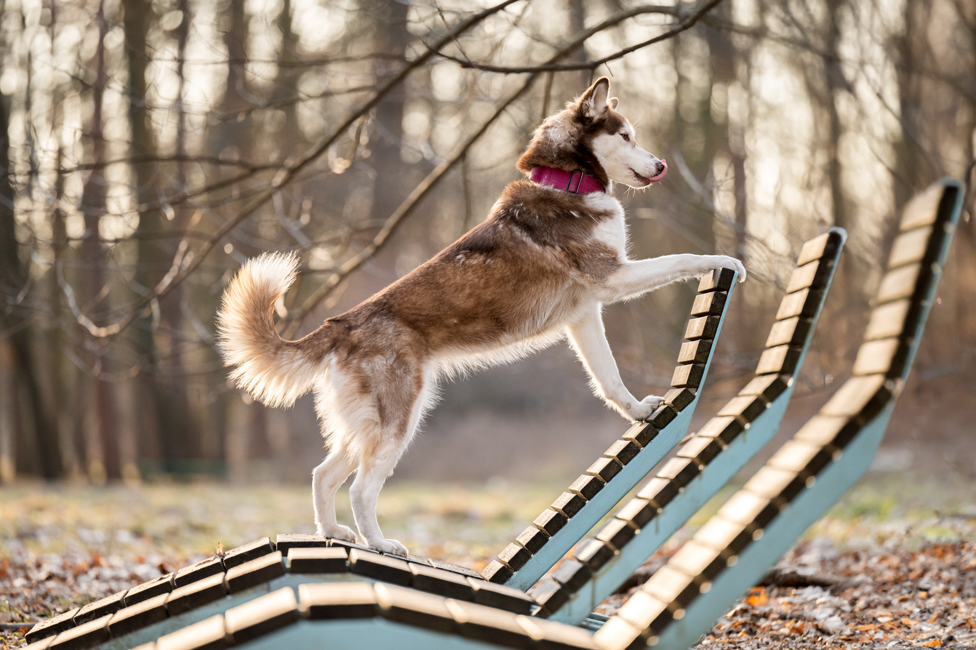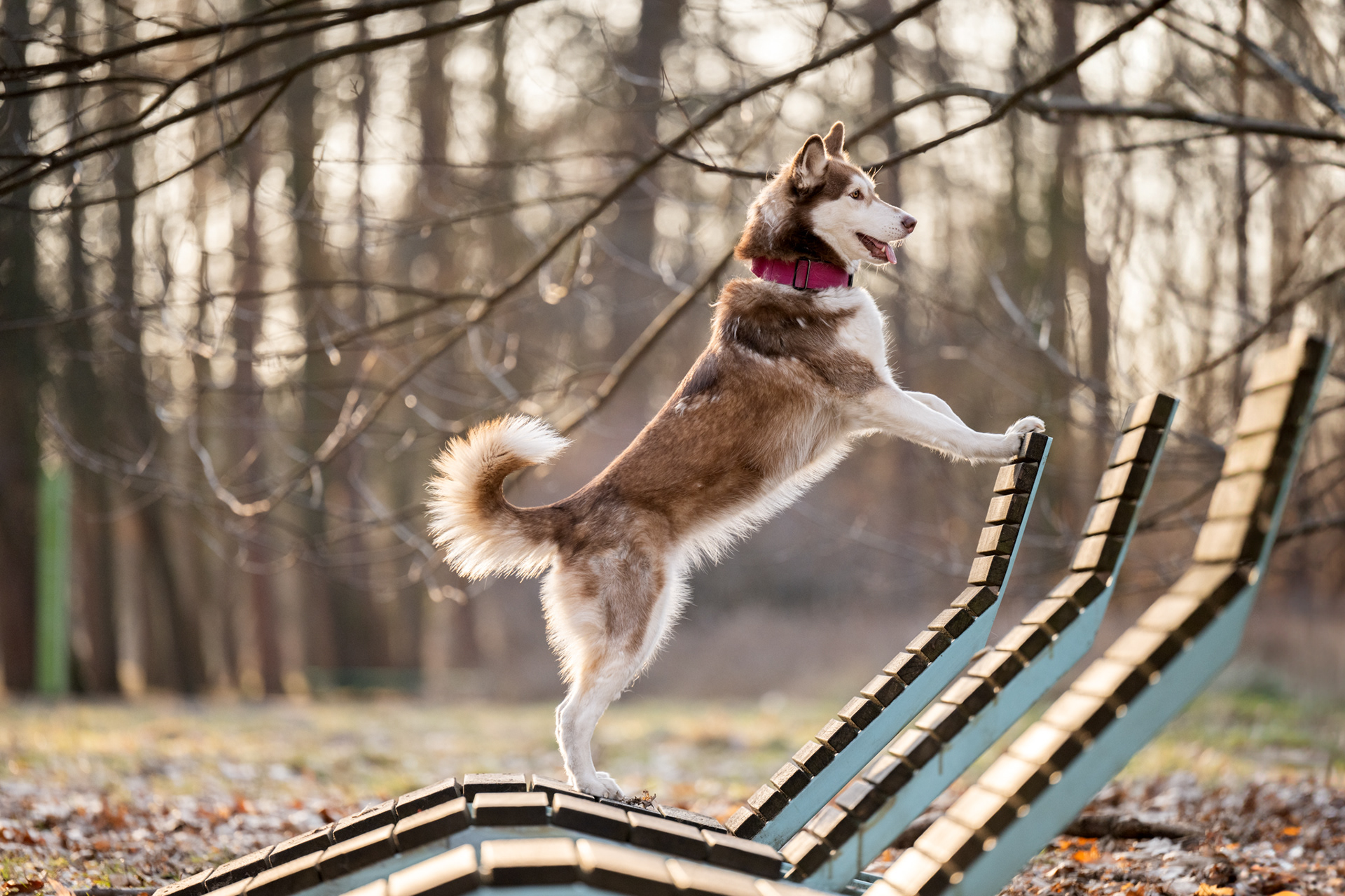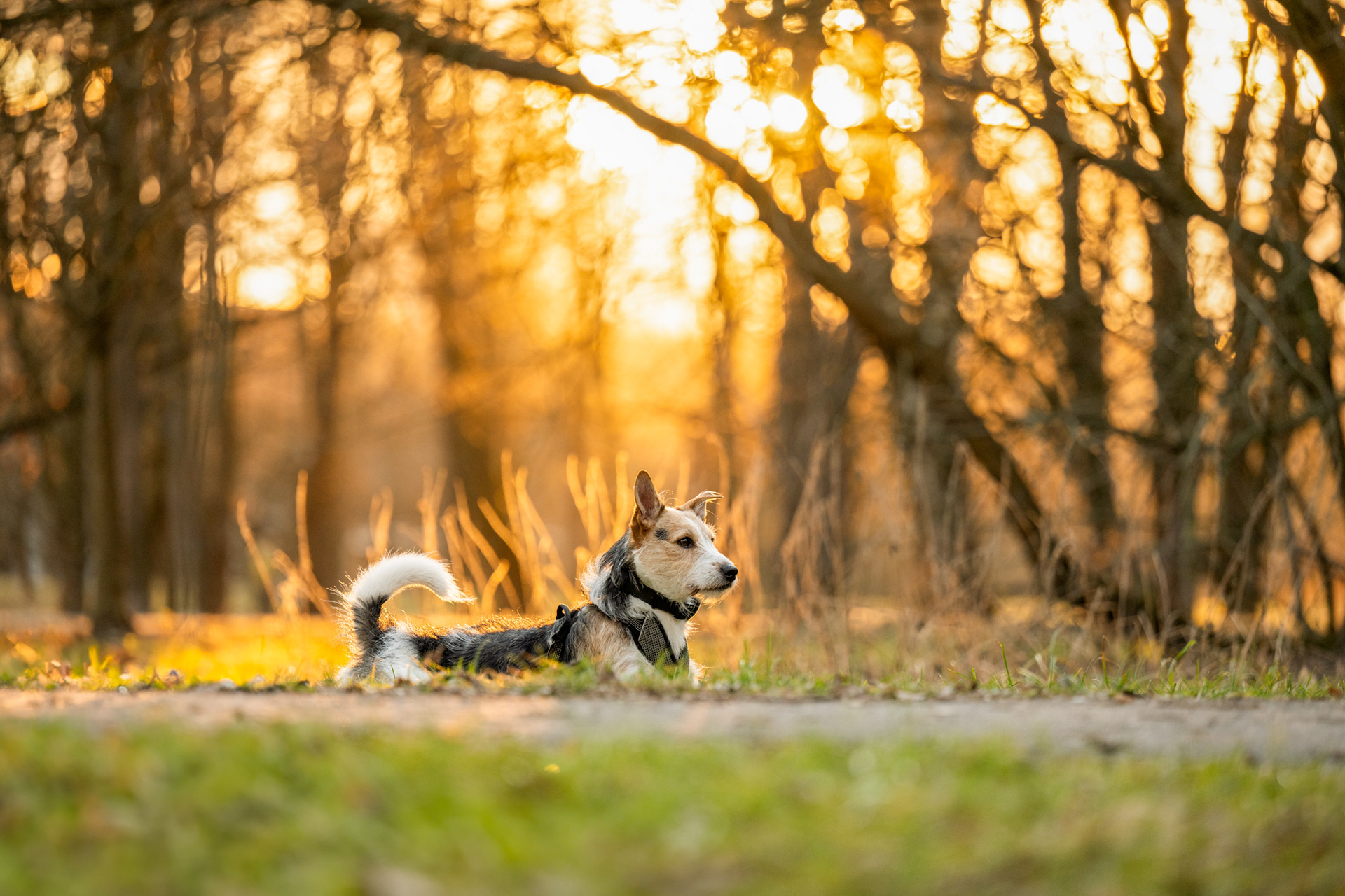 Park zachwyca o każdej porze roku – wiosną pełen jest świeżej zieleni, latem daje piękne światło pod koronami drzew, jesienią mieni się złotem, a zimą oferuje jasne, czyste tła. Znajdziesz tu zarówno gęste, leśne fragmenty, jak i szerokie polany czy charakterystyczne alejki, które świetnie sprawdzają się w kadrach. Co ważne, mimo swojej popularności park jest zwykle mało zatłoczony, dzięki czemu psy mogą czuć się swobodnie.