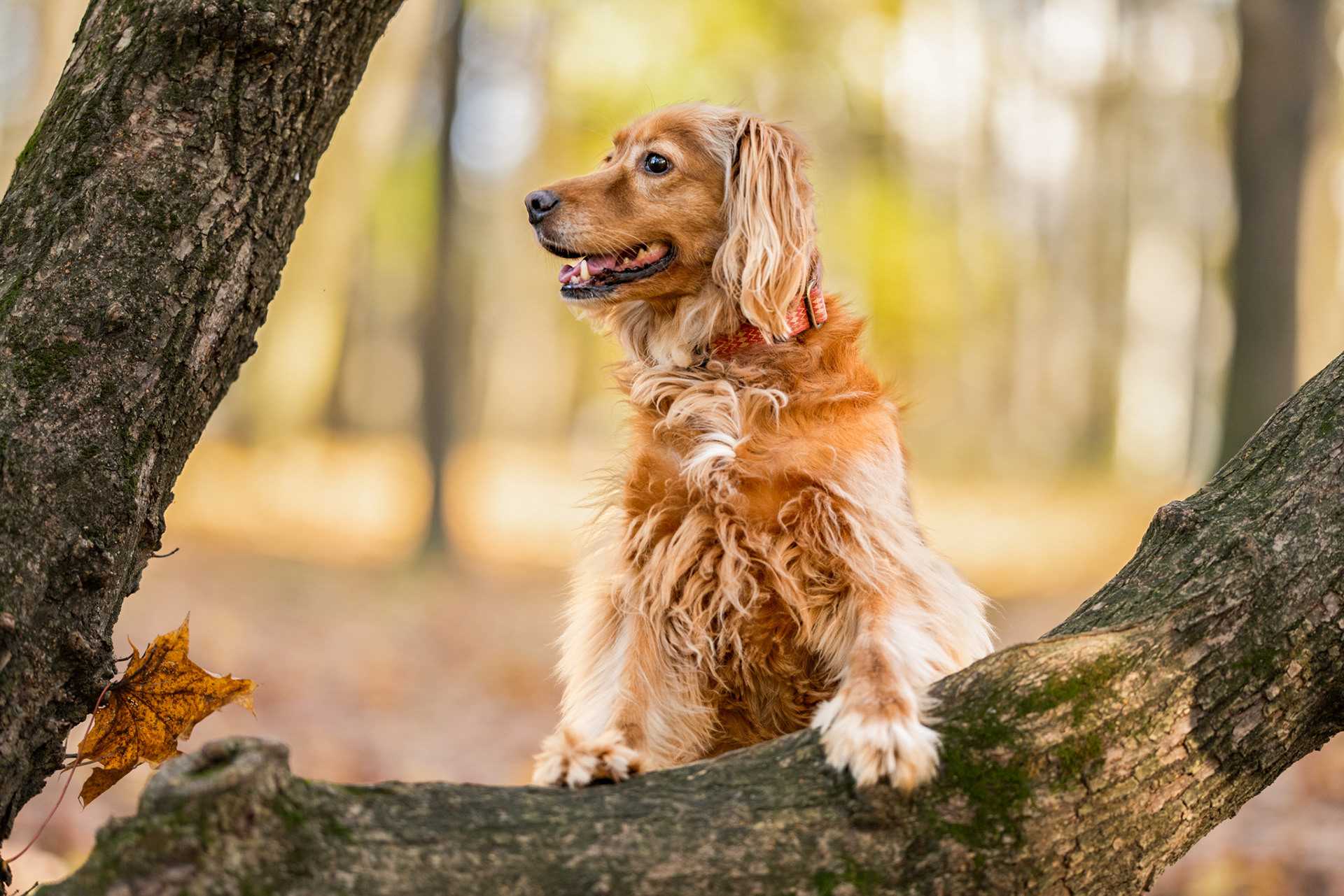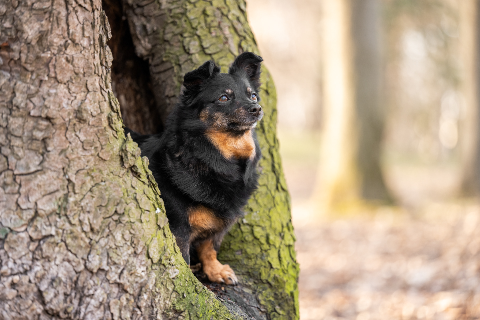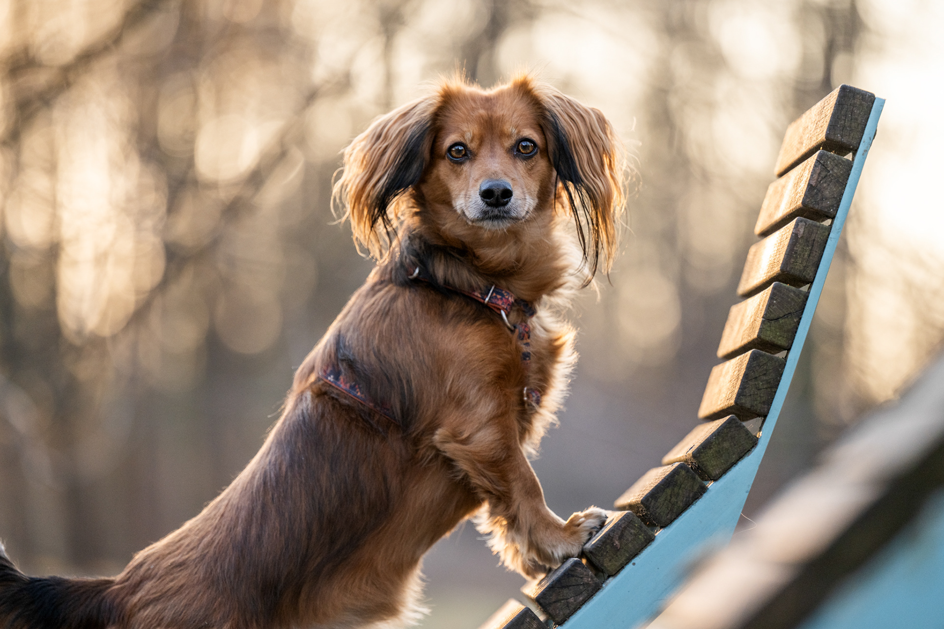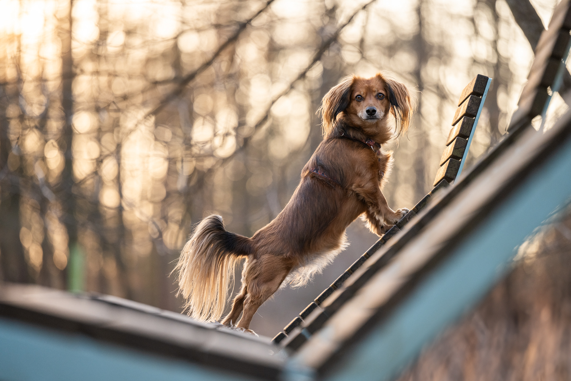 Park zachwyca o każdej porze roku – wiosną pełen jest świeżej zieleni, latem daje piękne światło pod koronami drzew, jesienią mieni się złotem, a zimą oferuje jasne, czyste tła. Znajdziesz tu zarówno gęste, leśne fragmenty, jak i szerokie polany czy charakterystyczne alejki, które świetnie sprawdzają się w kadrach. Co ważne, mimo swojej popularności park jest zwykle mało zatłoczony, dzięki czemu psy mogą czuć się swobodnie.