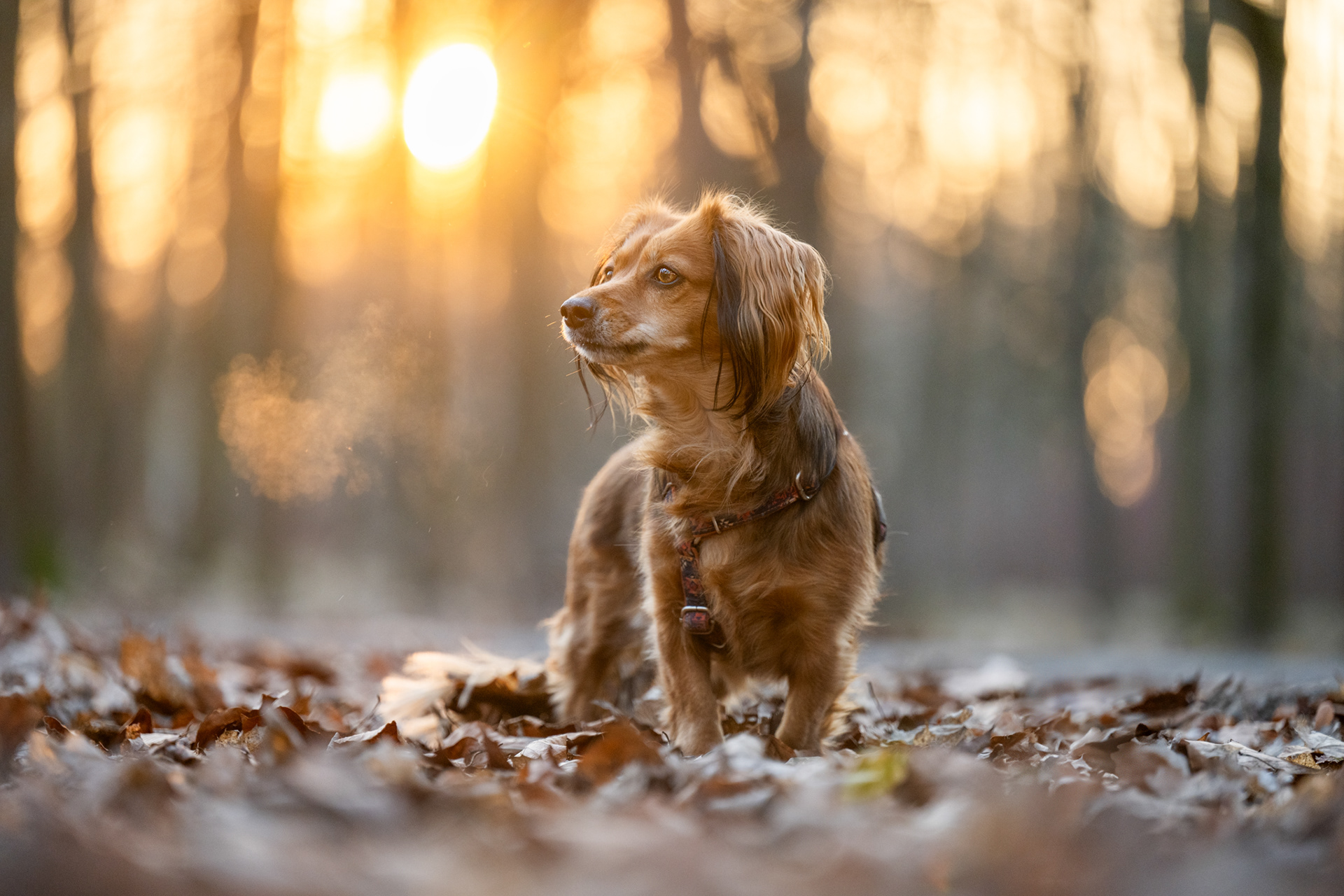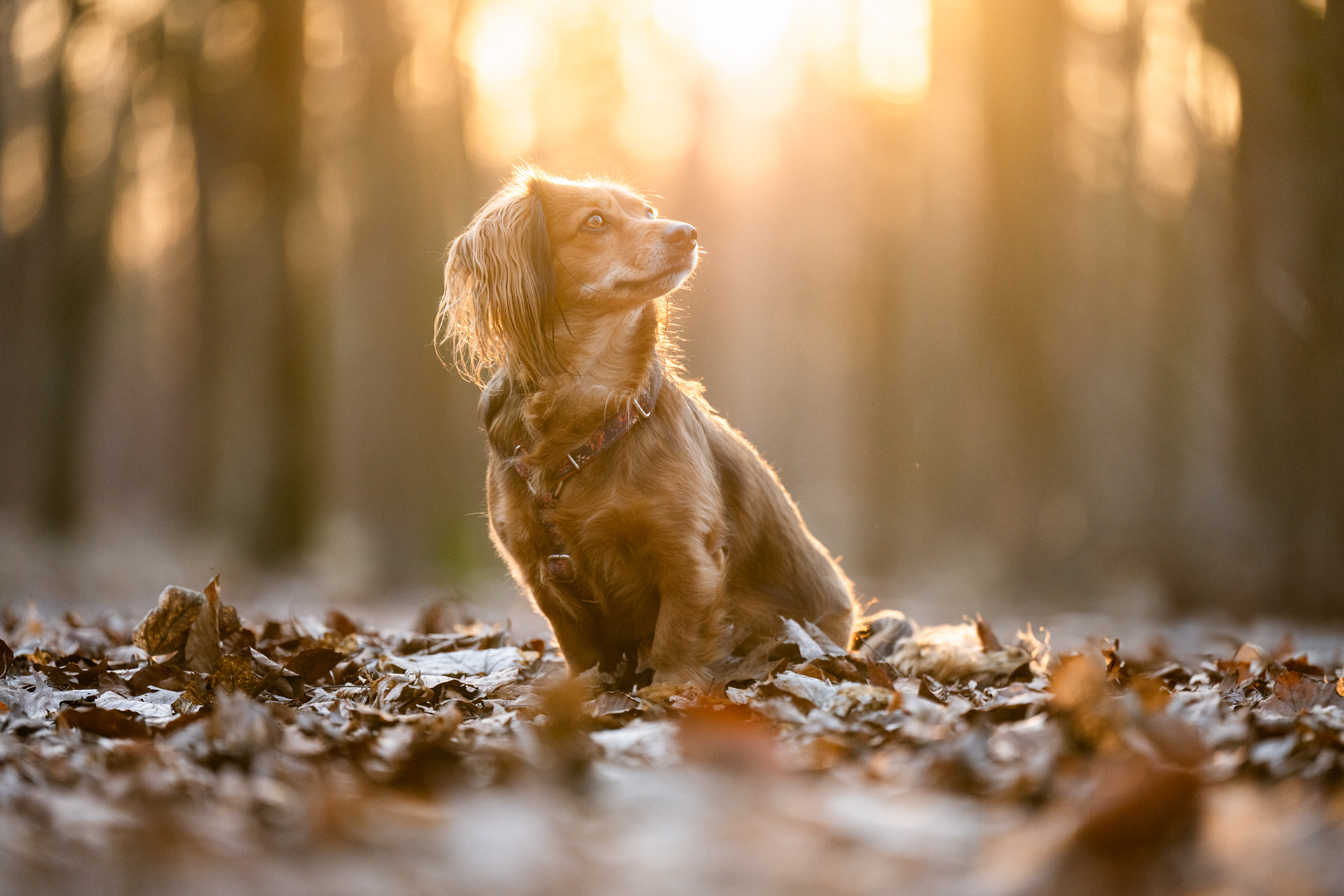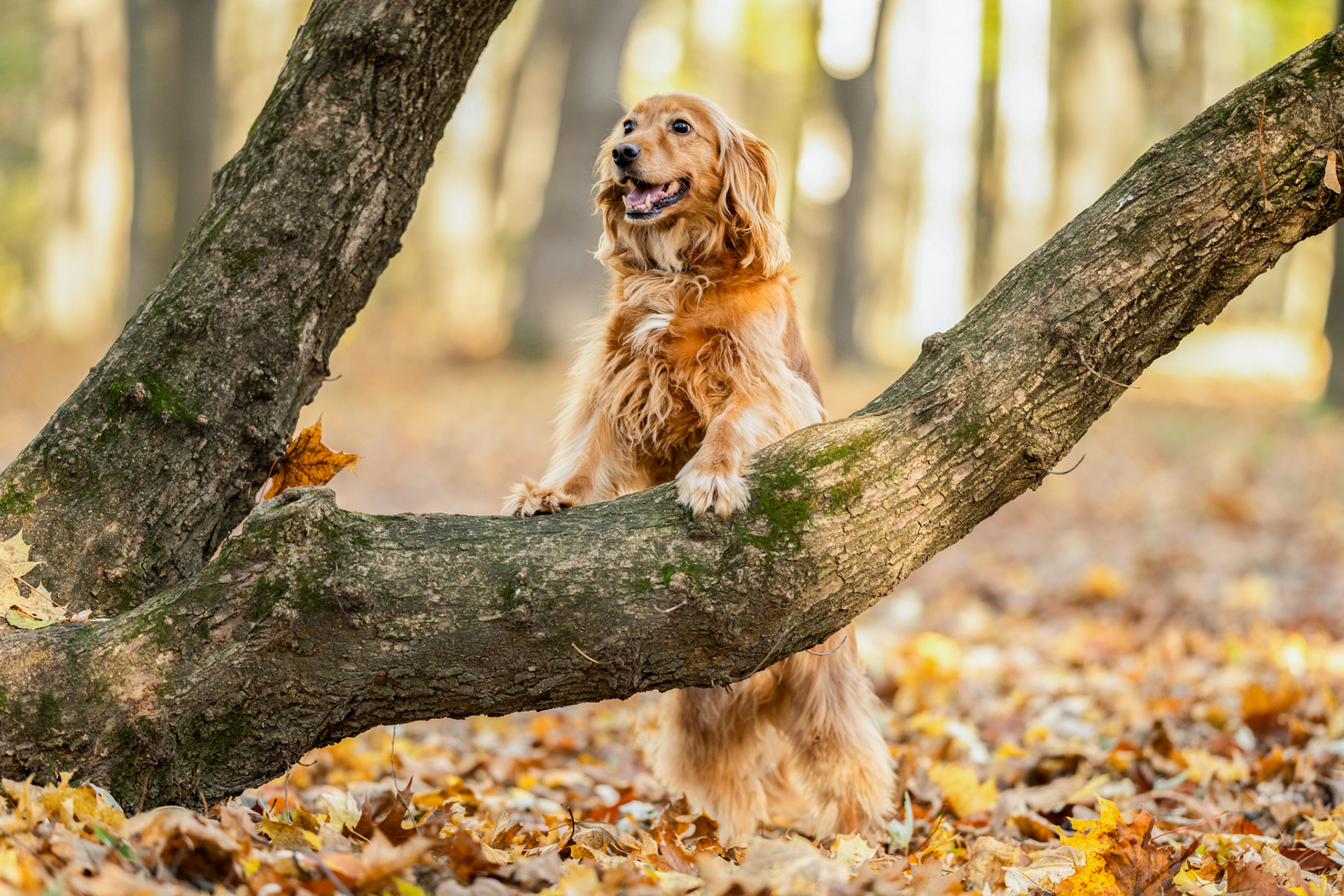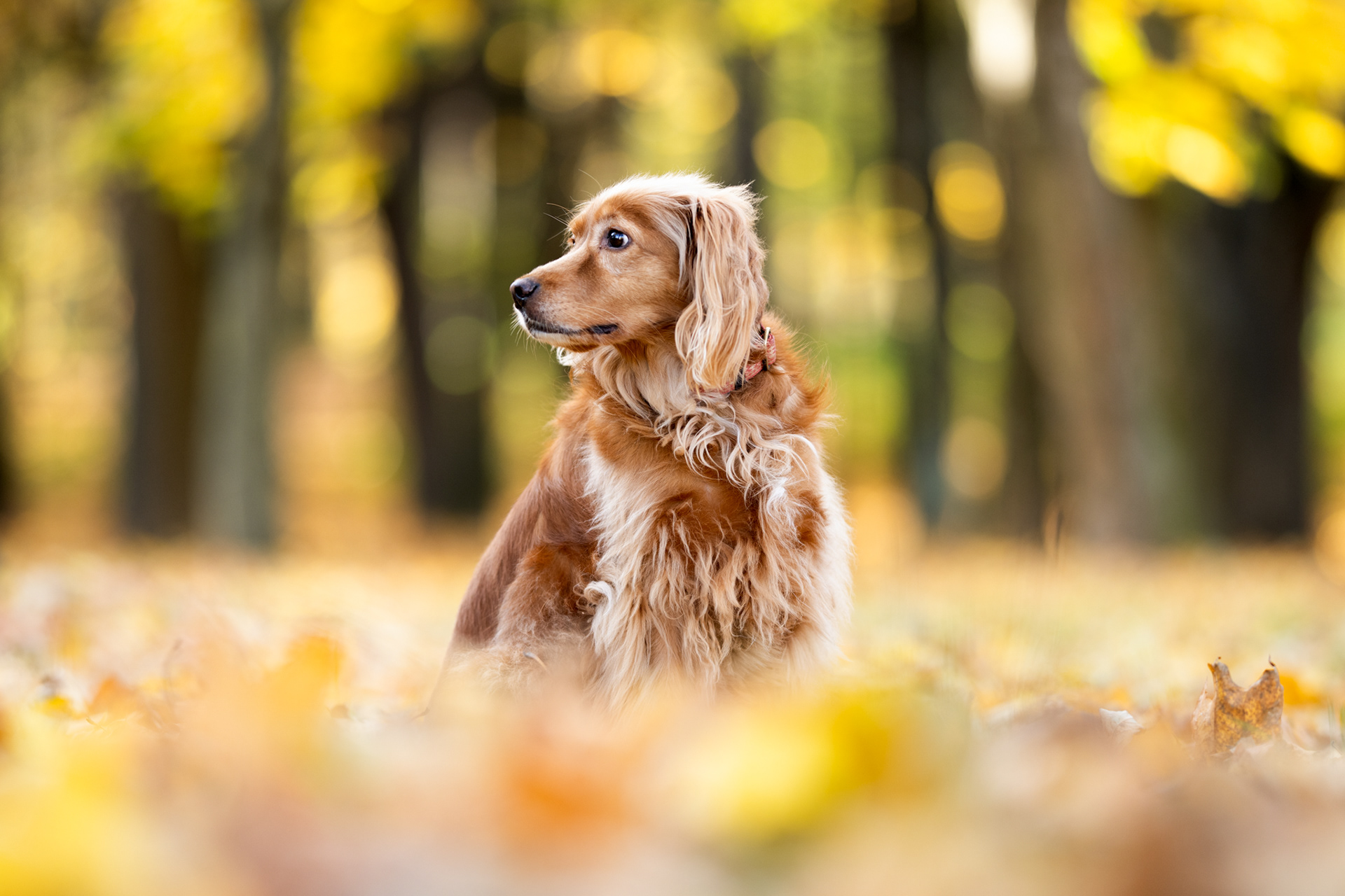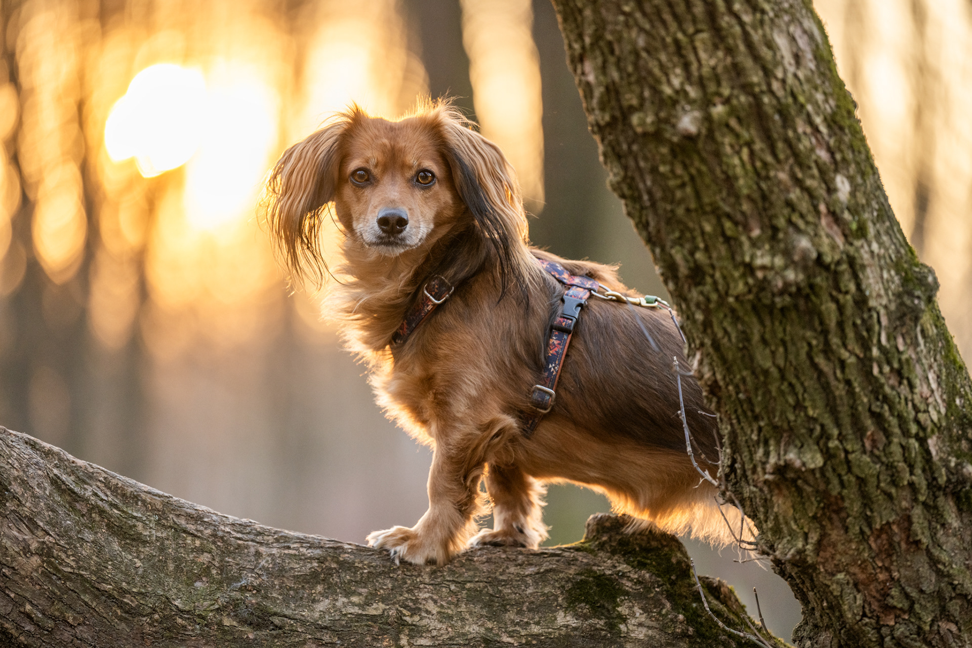 Park zachwyca o każdej porze roku – wiosną pełen jest świeżej zieleni, latem daje piękne światło pod koronami drzew, jesienią mieni się złotem, a zimą oferuje jasne, czyste tła. Znajdziesz tu zarówno gęste, leśne fragmenty, jak i szerokie polany czy charakterystyczne alejki, które świetnie sprawdzają się w kadrach. Co ważne, mimo swojej popularności park jest zwykle mało zatłoczony, dzięki czemu psy mogą czuć się swobodnie.